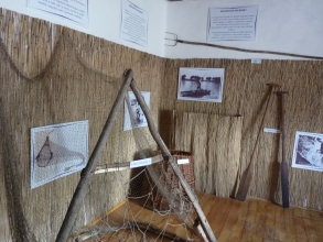 Szintén látványos elem volt a rekesztésnél használt varsa, a pontos célzást igénylő dobó-, illetve vetőháló vagy a kereső halászat eszköze, a csontos kece. Az eszközök használatát fotóinstallációk segítségével szemléltettük.